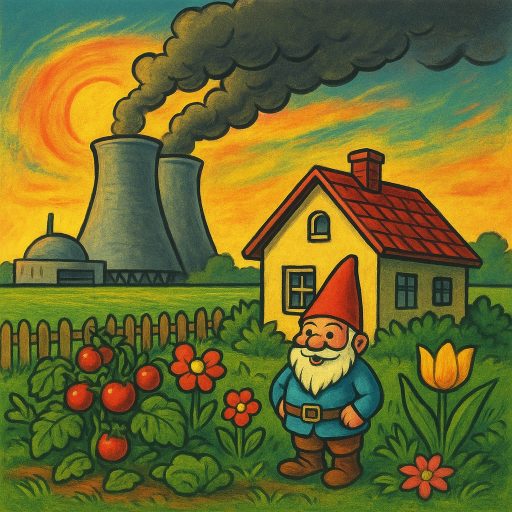 Herr Anton hat ein Häuschen mit einem Gartenzwerg. Und davor, da steht ein Kernkraftwerk.