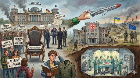 Am 5. Dezember 2025 protestierten in mehr als 90 Städten über 55.000 Schüler gegen die Wiedereinführung der Wehrpflicht durch das Wehrdienstmodernisierungsgesetz. Doch der Bundestag verabschiedete das Gesetz am selben Tag. Auch der Bundesrat stimmte am 19. Dezember zu, was die Frage aufwirft, warum die Grünen, die im Bundestag gegen das Gesetz votiert hatten, diese Entscheidung im Bundesrat nicht verhinderten. Der Artikel kritisiert die Grünen dafür, dass sie sich von ihrer ursprünglichen Friedenspolitik entfernt haben und dem Gesetz zugestimmt haben, obwohl sie offiziell gegen eine Wehrpflicht sind. Die Autorin betont, dass sich die Jugend, die gegen Militarisierung protestiert, allein gelassen fühlt, und dass es an der Zeit sei, über die Auswirkungen dieser politischen Entscheidungen nachzudenken. 23.12.2025 https://www.nachdenkseiten.de/?p=144184