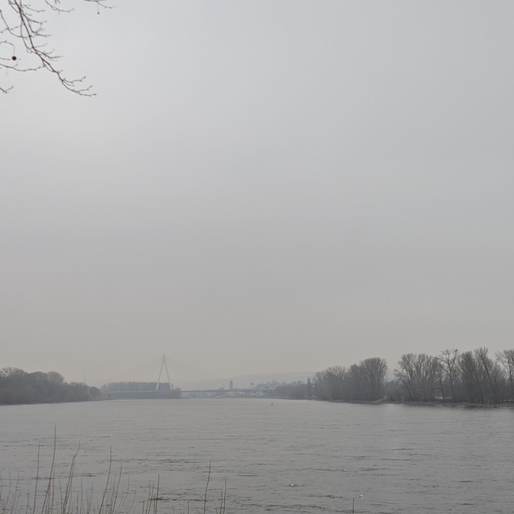 Danach ging ich in die Apotheke, um die am Mittwoch bestellte Heilerde abzuholen. Von dort aus ging ich 50 Minuten zu C., um mit S., der Hündin, spazieren zu gehen. Da P. an diesem Wochenende bei ihrem Freund J. ist, wollte ich X. davon entlasten, alle Spaziergänge mit S. machen zu müssen. Nach dem Spaziergang gab es einen Kaffee und ein Stück vom restlichen Christstollen. Für den Rückweg wählte ich den Weg am Rhein entlang und kam „zufällig” an meinem Bäckerei-Café vorbei. Dort trank ich einen Café Crema und aß einen Laugenkürbisring, während ich in der neuen Ausgabe der Zeitschriften c’t und Öko-Test las.