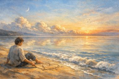 Besonders eindrücklich ist die Metapher des in den Sand gemalten Bildes, das von einer Welle fortgetragen wird. Sie zeigt einen positiven Umgang mit der Vergänglichkeit: Indem die Welle die „Idee von uns“ mitnimmt, entzieht sie diese dem Zugriff anderer und bewahrt sie in ihrer Reinheit, anstatt sie „verderben“ zu lassen. Der Text feiert den seltenen, kostbaren Moment, in dem der Mensch mit sich und der Welt im Reinen ist. Es geht um das Loslassen von Zweifeln und das Finden von Glück in der absoluten Gegenwart.